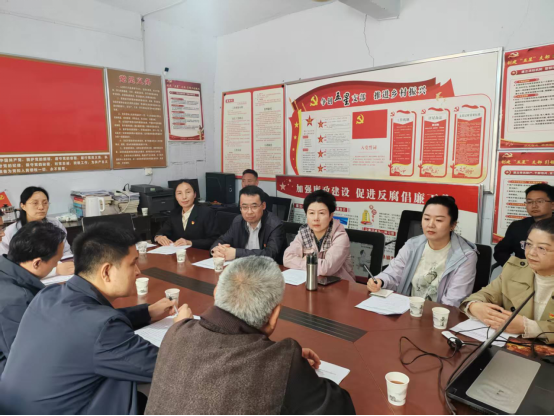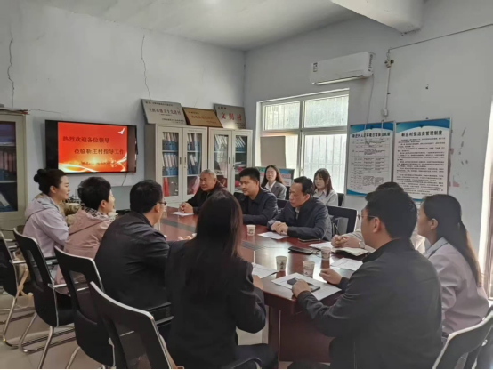 高炜、张银堂等一行人在靳庄村村委会,与乡领导、村“两委”干部和驻村工作队进行座谈交流,详细了解靳庄村基本情况、产业发展、年度工作计划以及驻村工作队开展工作情况。座谈会上,李英耀对驻村工作队的辛勤付出表示感谢,表示将大力支持驻村工作队开展各项帮扶工作。