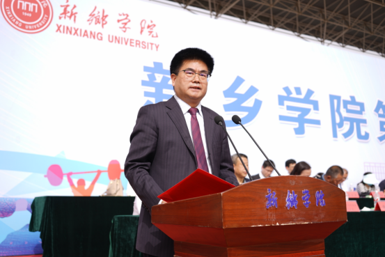 宋伟致开幕辞。他强调指出,学校深入贯彻体育强国战略,秉承“健康第一”理念,创新实施“1+1”体育改革,通过12支专项训练队斩获省级赛事4银2铜,实现“闪动校园”阳光跑覆盖率达98%,学生体质优良率提升15%,充分彰显体教融合成效。他寄语全体师生:一要赛出竞技水平,彰显青春风采,以奥林匹克精神挑战极限、诠释运动之美。二要弘扬体育精神,凝聚奋进力量,在团队协作中培育应变智慧,将赛场上永不言弃的斗志转化为求知创新的动力。三要践行健康理念,引领校园风尚,让“每天锻炼一小时”成为校园风尚,共同书写青春奋进新篇章。