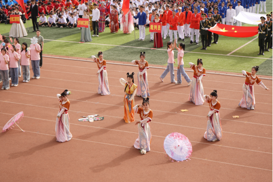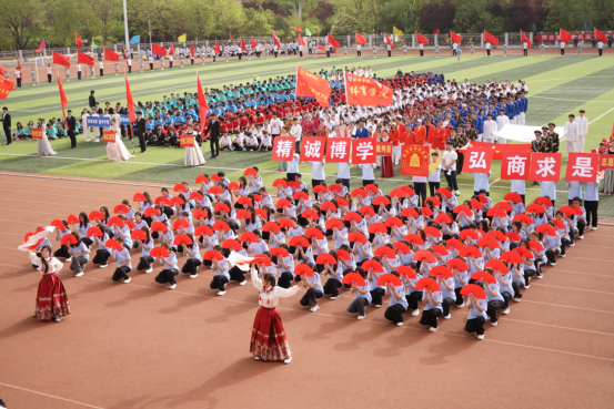 伴随着激昂的运动员进行曲,国旗方阵、会旗方阵、红旗方阵、鲜花方阵、青年志愿者方阵、裁判员方阵、21 个学院方阵和我校联合培养研究生方阵依次入场。各方阵精心编排,创意十足,充分展现了我校学子的青春风采与蓬勃朝气,收获了全场热烈掌声。