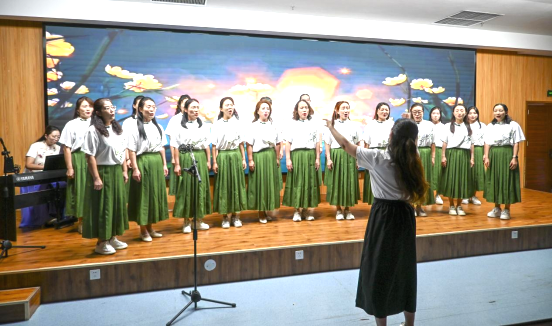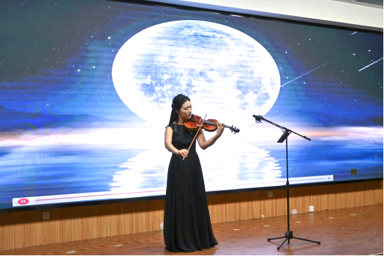 除了诗文诵读,活动还融入了丰富的艺术表演。小提琴独奏《月亮代表我的心》旋律悠扬,为诵读会增添了浪漫气息;德赢ac米兰官方合作vwin女工合唱团带来的《萱草花》温柔婉转,展现了师者的柔情似水;女声独唱《望月》则以空灵的嗓音将观众带入澄澈的月夜。