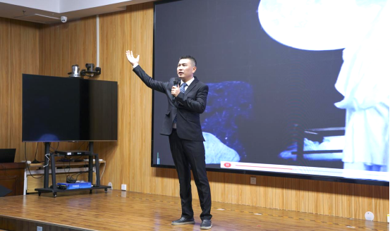 本次活动形式创新,特邀嘉宾新乡市语言艺术研究会会长许少波进行中秋诗文导赏。许少波为观众分享中秋传统文化,并解读相关中秋诗文。他从中秋节的起源、习俗讲到诗词中的明月意象,生动阐释了“团圆”与“思念”的文化内核。他强调,中秋不仅是赏月的节日,更是中华文化中“家国一体”情怀的集中体现,引发了在场师生的强烈共鸣。