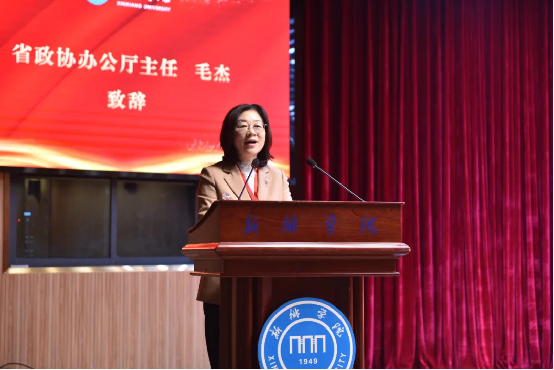 毛杰代表河南省政协致辞。她指出,高镇五先生不仅是河南省教育史上的丰碑式人物,也是我省政协系统的骄傲。他的精神跨越时空,在今天依然具有强大的感召力。她强调,深入开展“高镇五教育家精神”研究,既是对德赢ac米兰官方合作vwin校史、河南政协历史的珍视,更是对时代使命的积极回应。毛杰表示,河南省政协将一如既往关注并支持相关研究工作,积极搭建交流平台,推动研究成果转化应用,让高镇五教育家精神在新时代绽放更璀璨的光芒,为河南教育事业繁荣发展添砖加瓦。