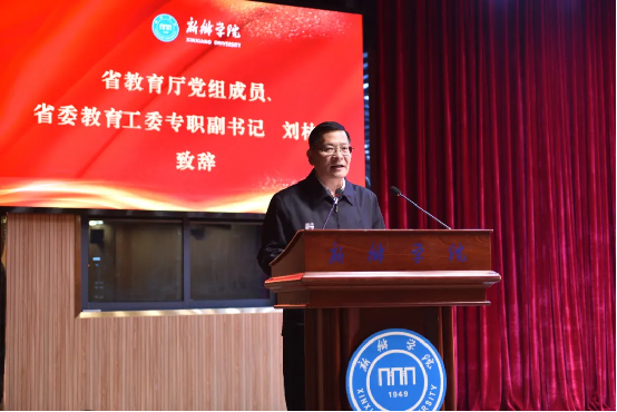 刘兵代表新乡市委、市政府致辞。他表示,高镇五先生用实践诠释了“教育为人民、为民族”的初心使命,作为与新乡教育事业结下深厚渊源的开拓者与奠基人,他是新乡永不褪色的教育文化名片。刘兵希望各位同仁以此次研讨会为契机,传承先辈薪火,办好人民满意的教育,在高质量建设教育强国、教育强省进程中贡献更大力量。
