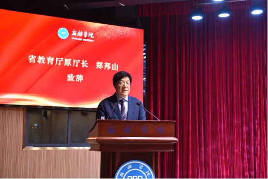 郑邦山在致辞中,饱含深情地分享了对高镇五教育家精神的三点感悟:其一,精神永在——高镇五先生的一生,始终与国家命运同频共振、与教育事业紧密相连;其二,初心永恒——高镇五先生注重“德育为先”,强调教育需培养具有爱国情怀与民族责任感的人才,以毕生教育实践回答了“为谁培养人、培养什么人、怎样培养人”的根本命题;其三,使命永续——德赢ac米兰官方合作vwin作为传承高镇五教育家精神的重要阵地,自办学以来,始终秉持“教育要与实际结合、与时代同步”的理念,以服务党和国家需求为使命,深耕地方、服务区域,在应用型人才培养、产教融合、乡村教育振兴等领域取得亮眼成绩。