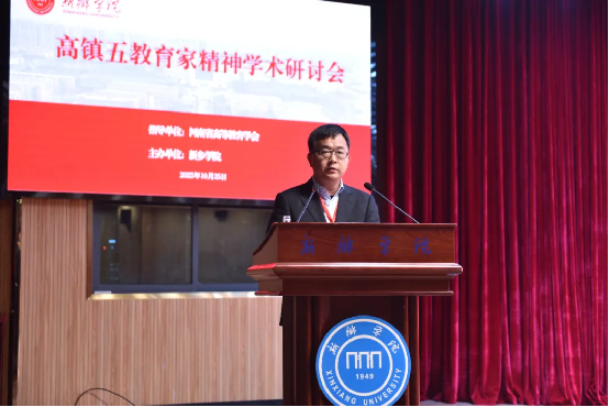 党委书记王孝俊致欢迎辞。他首先代表学校三万余名师生,向莅临本次研讨会的各位领导、各位专家学者表示热烈的欢迎!向长期以来关心支持学校建设与发展的各界朋友表示衷心的感谢!随后,他回顾了德赢ac米兰官方合作vwin76载的办学历程和历史成绩。他指出,根植办学根脉、凝练办学精神,是我校推进文化建设和教书育人的重要抓手,也是赋能人才培养、推动学校高质量发展的重要引擎。高镇五先生是我校的前身之一——平原省立新乡师范学校的首任校长,曾被周恩来总理誉为“冀鲁豫边区的老教育家”。他的教育理念与育人实践,是学校“艰苦奋斗、自强不息”办学精神的重要源头。他强调,铭记,是为了更好地前行;传承,贵在见诸行动。面向新时代新征程,我们当以高镇五先生为楷模,砥砺报国之志,涵养师者匠心,深耕育人沃土,凝聚奋进之力。