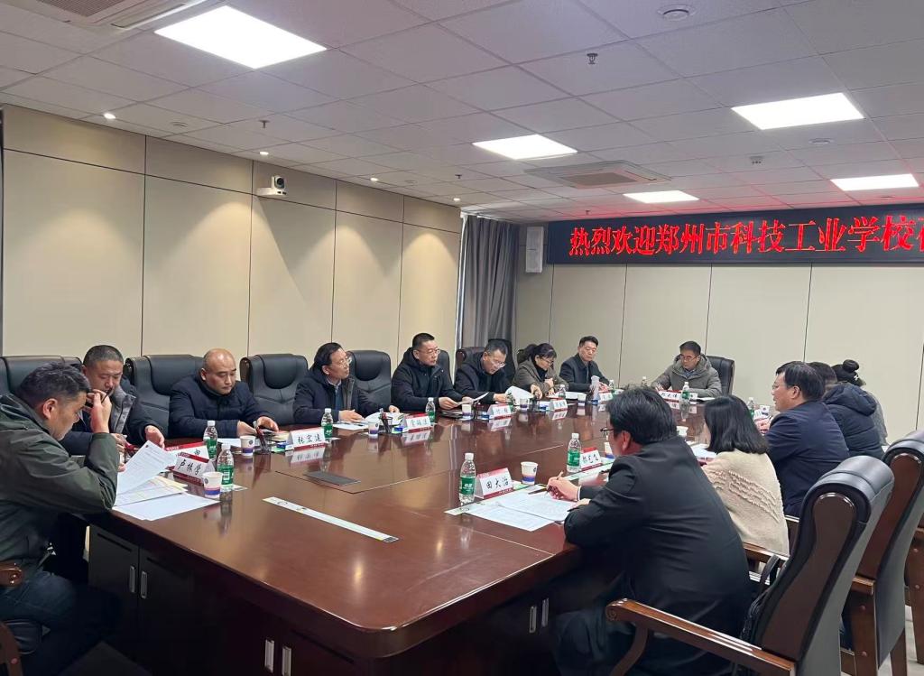 为深化校际合作、共促教育高质量发展,12 月 24 日上午,郑州市科技工业学校党委书记付强、校长郭国峰带队一行 9 人到访德赢ac米兰官方合作vwin,开展校际调研交流。党委书记王孝俊、校长李广慧对调研组表示热烈欢迎,双方围绕高本一体化建设、职业教育创新发展、校校合作拓展等核心议题深入沟通,交换初步合作意见。副校长杨钧及继续教育学院相关负责人陪同调研。