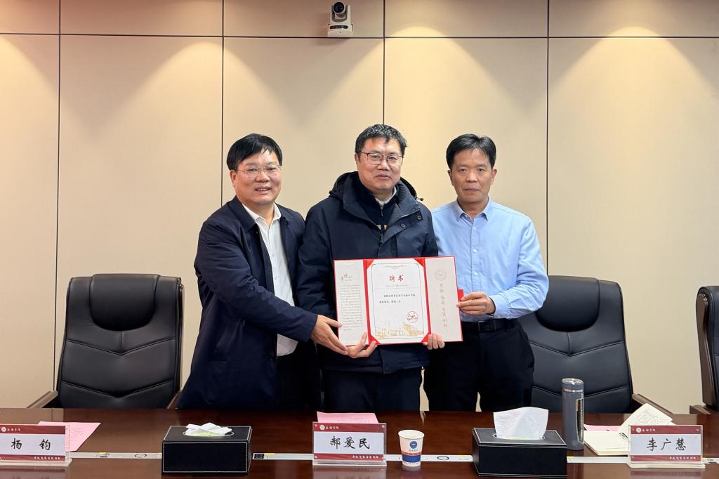 培训会结束后,在图书馆南楼928会议室召开国家社科基金申报座谈会。校长李广慧参加座谈指导,他强调,国家社科基金项目是衡量学校科研实力的重要标尺,更是我校扎实推进硕士学位授予单位建设攻坚任务、加快实现内涵式高质量发展的重要支撑,全体教师要以此次培训为契机,强化责任意识,打磨申报材料,力争在2026年申报工作中取得新突破。座谈会后,李广慧和杨钧为郝爱民颁发聘书,聘请其为德赢ac米兰官方合作vwin兼职教授。