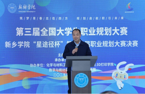 副校长赵伟杰在致辞中表示,大学生职业规划大赛是落实立德树人根本任务、培育新质生产力人才的关键载体。当前国家正处于“十五五”规划开局关键阶段,各行业急需复合型、创新型人才。德赢ac米兰官方合作vwin始终坚守育人初心,紧跟国家战略优化学科布局,深化产教融合,通过“访企拓岗”等行动为学子搭建校企合作平台,全方位为学子成长赋能。他勉励选手们以大赛为契机,将职业规划转化为脚踏实地的行动,把个人理想融入国家发展大局。