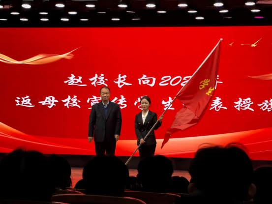 仪式最后,赵伟杰向参加2026年“暖冬母校行”的学生代表授旗。