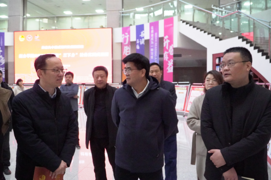 为全面深入总结我校2025年大学生暑期“三下乡”社会实践活动的成效与经验,1月13日下午,校团委在图书馆二楼大厅举办了以“青春为中国式现代化挺膺担当”为主题的社会实践成果展。党委副书记宋伟,党委学工部部长、学生处处长王坤,图书馆党支部书记陈国胜,馆长刘铁男,校团委老师及各学院团委书记一行到现场观展。