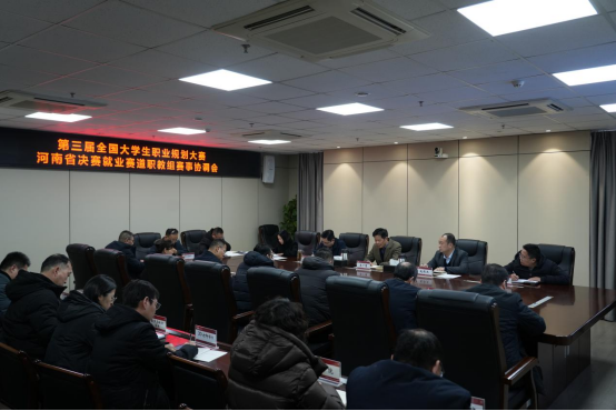 1月19日下午,第三届全国大学生职业规划大赛河南省决赛就业赛道职教组赛事组织分工协调会在928会议室召开。校长李广慧出席会议并讲话,副校长赵伟杰主持会议,校长办公室、党委宣传部、团委、教务处、学生处、招生与就业处、财务处、后勤管理处、保卫处、实验实训中心、信息化管理中心、化学与材料工程学院、生物工程学院、3D打印学院、数学与统计学院、商学院、管理学院负责人参会。