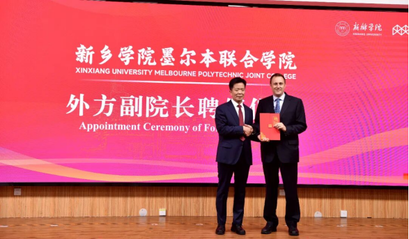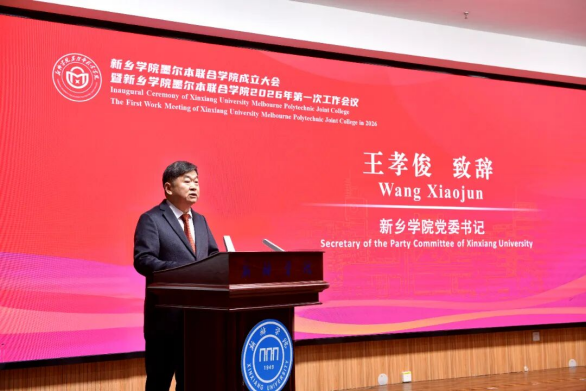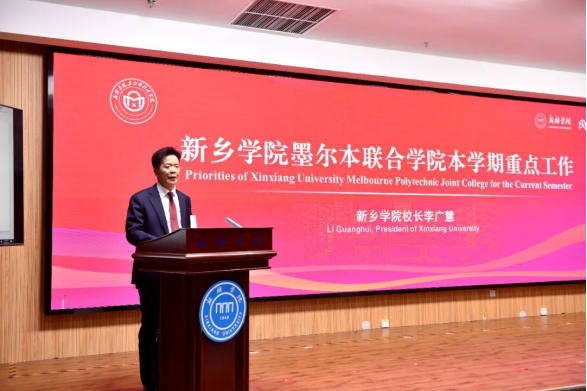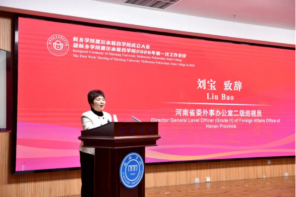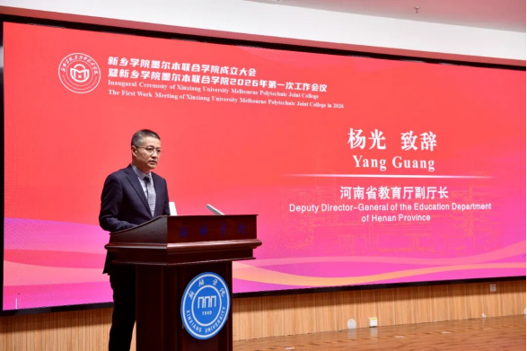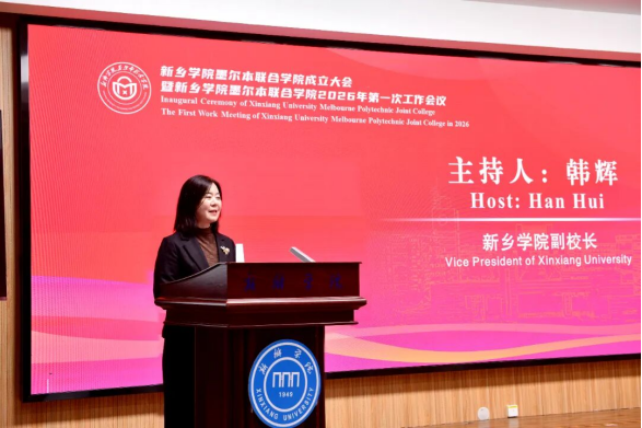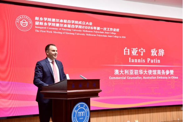 3月16日,德赢ac米兰官方合作vwin墨尔本联合学院成立大会暨2026年第一次工作会议在图书馆一楼东报告厅召开。澳大利亚驻华大使馆商务参赞白亚宁(Iannis Patin)、商务处商务官员刘熹璇(Grace Liu),墨尔本理工学院副校长提姆・吉尔伯特(Timothy Gilbert),澳大利亚职业教育联盟秘书长关北松(Barry Guan);河南省教育厅副厅长杨光,河南省委外事办二级巡视员刘宝,新乡市人民政府副市长刘兵等省、市相关部门领导;德赢ac米兰官方合作vwin党委书记王孝俊,校长李广慧等校领导班子成员,学校职能部门、二级学院负责人及师生代表出席会议。大会由副校长韩辉主持。