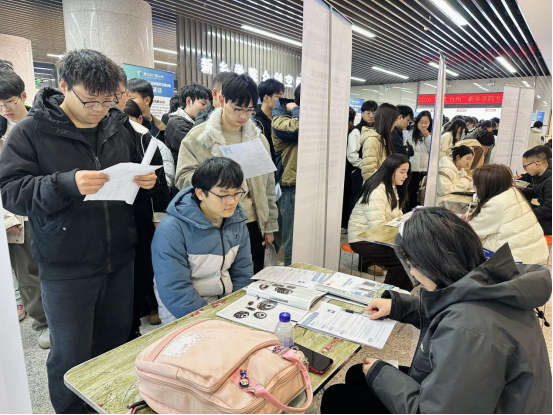 本次招聘会由台州市委人才办、台州市人力社保局与德赢ac米兰官方合作vwin联合主办。浙江严牌过滤技术股份有限公司、浙江天铁科技股份有限公司、浙江仙居君业药业有限公司等24家台州优质企业组团参会,聚焦新能源、新材料、智能制造、医药健康等重点产业,提供优质岗位800余个。招聘会现场供需热洽,毕业生与企业招聘人员深入交流,咨询岗位详情、发展空间与人才政策,积极投递简历。企业招聘人员耐心答疑,细致介绍台州人才政策与企业文化,精准筛选适配人才。