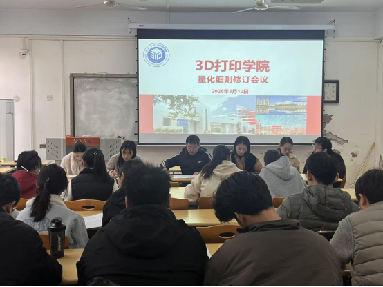 此次量化细则修订专题会议的召开,进一步优化了学院考核管理体系,提升了管理制度的科学性与透明度。下一步,3D打印学院将持续完善学生管理机制,强化责任落实,不断提升育人质量与服务水平,全力为全体学生营造规范有序、积极向上的成长环境,助力学生全面发展、成才成长。