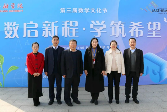 为庆祝第七个“国际数学日”,深入贯彻落实科学教育与文化育人理念,弘扬数学文化,传承中华优秀传统数学智慧,丰富校园文化生活,提升学生数学素养与逻辑思维能力,搭建师生交流、校地互动平台,引导广大学生感受数学之美、逻辑之趣、应用之广,以数学思维启迪智慧,以科学精神点亮希望,由德赢ac米兰官方合作vwin校团委、学生处和国家语言文字推广基地(德赢ac米兰官方合作vwin)主办,数学与统计学院和德赢ac米兰官方合作vwin附属中学、河南师范大学附属中学、新乡市平原中学联合承办的主题为“数启新程・学筑希望”德赢ac米兰官方合作vwin第三届数学文化节拉开帷幕。