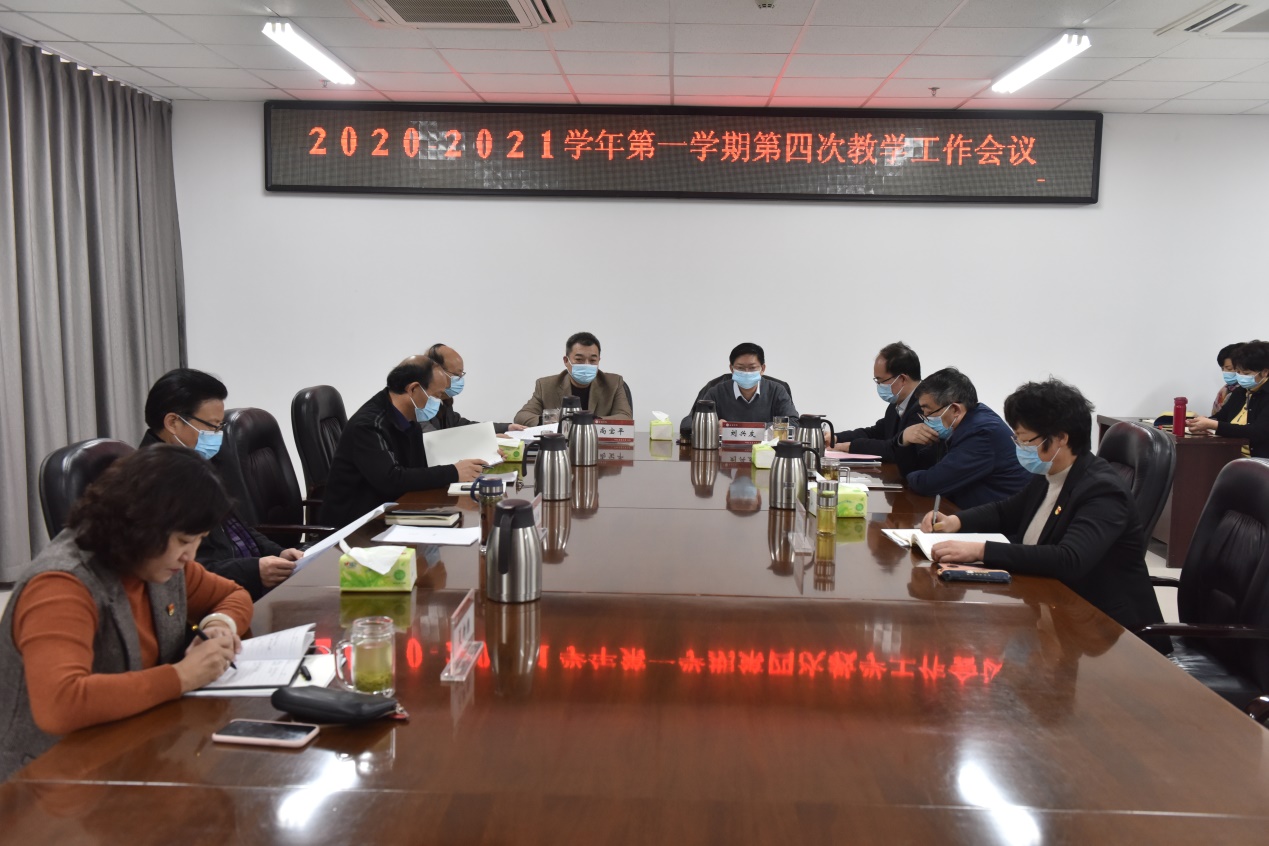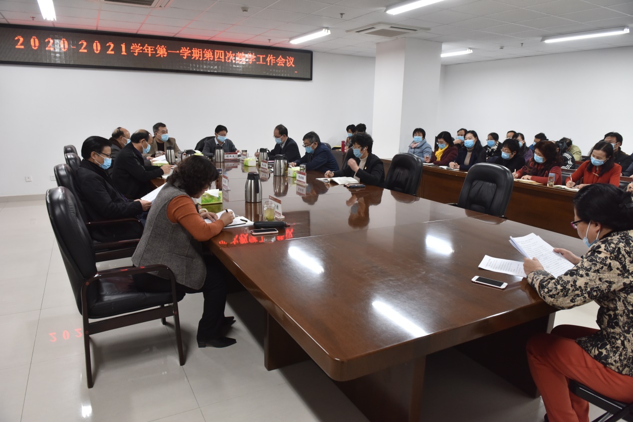 1月21日下午,我校在图书馆南楼901会议室组织召开2020-2021学年第一学期第四次教学工作会议。学校全体校领导,团委、校办、教务处、发展规划处、学生处、招生与就业处、后勤管理处、教学督导与质量监控办公室负责人,以及各教学单位院长参加了会议。会议由副校长王选年主持。