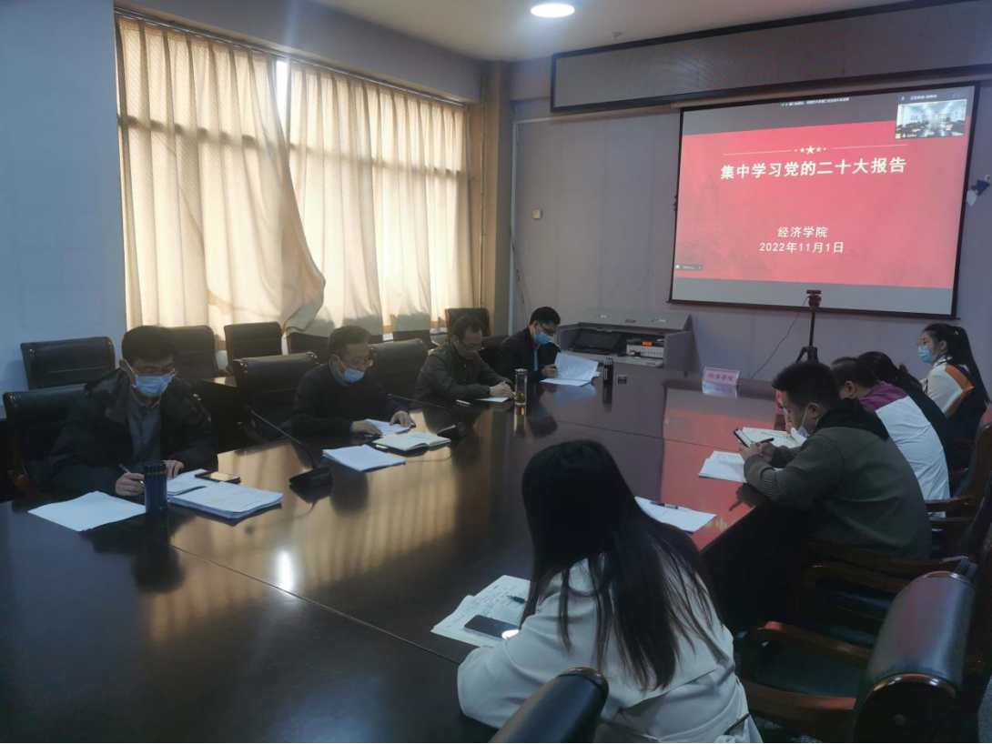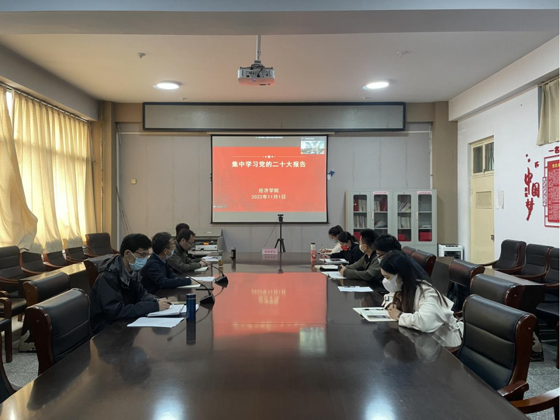 11月1日下午,经济学院党委理论学习中心组在学院会议室召开会议,专题学习党的二十大精神,会议由经济学院党委副书记陈卓主持,经济学院党委理论学习中心组全体成员参加。