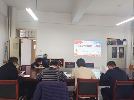 11月4日上午,医学院党总支理论学习中心组在A14号楼三楼会议室召开会议,专题学习了党的二十大精神。会议由医学院党总支书记职丽娟主持,中心组全体成员参与会议,并就深刻学习宣传贯彻党的二十大精神谈了体会。