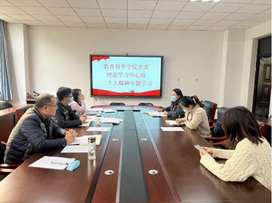 11月1日下午,教育科学学院党委理论学习中心组在本院会议室召开专题学习会议,深入学习习近平总书记在中国共产党第二十次全国代表大会上作的报告。学习会议由学院党委书记吕明哲主持,学院党委理论学习中心组全体成员参加了本次会议。