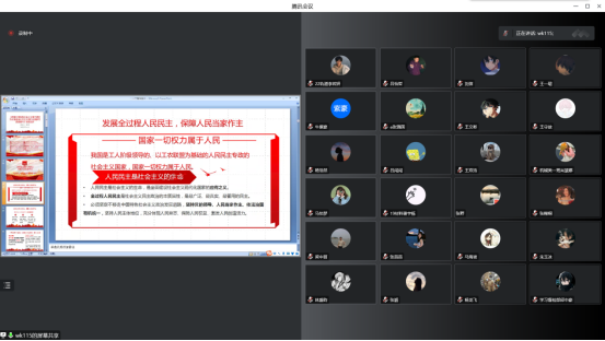 韩辉表示,党的二十大报告内容丰富、涵义精深。本次宣讲主要围绕党的二十大报告中“发展全过程人民民主,保障人民当家作主”和“推进国家安全体系和能力现代化,坚决维护国家安全”两个方面展开。从加强人民当家作主制度保障、全面发展协商民主、积极发展基层民主、巩固和发展最广泛的爱国统一战线四个部分,阐述了如何实现全过程人民民主,结合《中国共产党统一战线工作条例》对民主协商、民主决策、民主管理、民主监督进行了深入讲解;并从国家安全观的发展历程、坚持总体国家安全观的缘由、五年来我国经受的国家安全问题的挑战等方面分析了总体国家安全观的内涵以及如何维护国家安全。