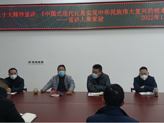 黄家骏在宣讲中指出,“中国式现代化”是新时代新征程奋斗进取的全局性指导,是我们把握工作方向、方法的重要指导,是我们理解发展本质和路径的根本出发点。在追求国家现代化的竞技场上,中国共产党领导中国人民不甘落后、奋起直追,自信自强、守正创新。经过长期艰辛探索实践,特别是党的十八大以来理论和实践的不断创新突破,我们党团结和带领全国人民迈入全面建设社会主义现代化国家新征程,推进和拓展了中国式现代化。
