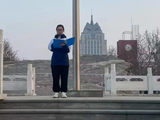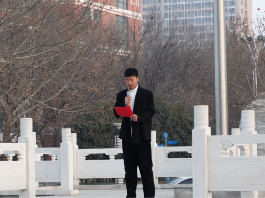 随后,物理与电子工程学院学生代表李亚哲在国旗下发言,号召同学们作为新时代的大学生,要点亮希望的火种,接受新时代的考验,为祖国创造更辉煌灿烂的明天而奋斗。接着,国旗护卫队代表发言,表示将继续以弘扬爱国主义精神为己任,展现当代大学生团结进取、积极向上的精神风貌,为校园精神文明建设贡献力量。