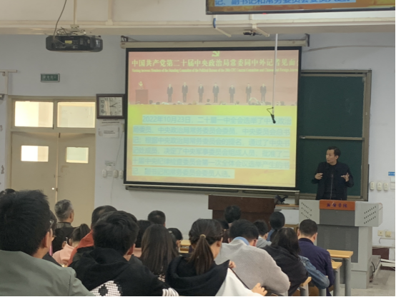 4月11日下午,学院召开主题教育动员大会。会上特邀学校党的二十大精神宣讲团成员、党委巡察办主任郭明进开展题目为《认真学习党的二十大精神,自觉担负好立德树人根本任务》的专题宣讲,学院全体教师和学生代表150余人参加宣讲会。