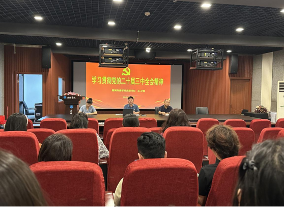 为深入学习宣传贯彻党的二十届三中全会精神,切实把贯彻落实全会精神转化为推进学院高质量发展的生动实践,9月10日下午,新闻传播学院在A12教学楼五楼审片室开展学习贯彻党的二十届三中全会精神宣讲会,学院党委书记王卫锋同志进行宣讲,学院全体教师参加会议。