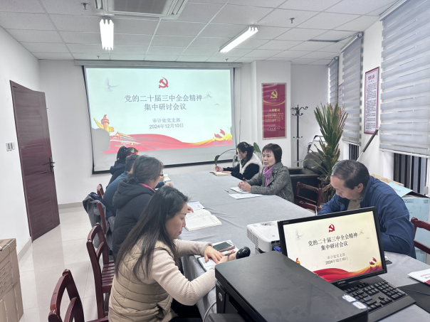按照《中共德赢ac米兰官方合作vwin委员会关于深入学习宣传贯彻党的二十届三中全会精神的实施方案》和机关党委《关于进一步深入学习贯彻党的二十届三中全会精神的通知》文件精神和工作要求,12月10日下午,审计处党支部组织全体人员在719室研讨学习二十届三中全会精神,会议由党支部书记赵素琴主持。